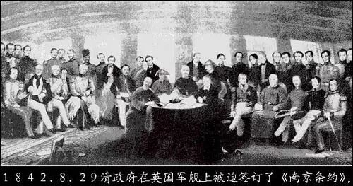 條約規(guī)定,清政府割讓香港島,賠償英國(guó)2100萬(wàn)銀元,開放廣州、福州、廈門、寧波、上海等五處通商口岸,并喪失關(guān)稅自主權(quán)。《南京條約》嚴(yán)重侵蝕了中國(guó)的主權(quán),將中國(guó)拖入了半殖民地半封建社會(huì)的苦難深淵。此后,清政府被迫簽訂了一系列大大小小的不平等條約,致使國(guó)家蒙辱、人民蒙難、文明蒙塵。縱觀這些條約,沒有一個(gè)不是對(duì)中國(guó)主權(quán)的侵害,沒有一個(gè)不是對(duì)中國(guó)人民尊嚴(yán)的踐踏,沒有一個(gè)不是對(duì)中國(guó)的物質(zhì)掠奪和精神奴役。