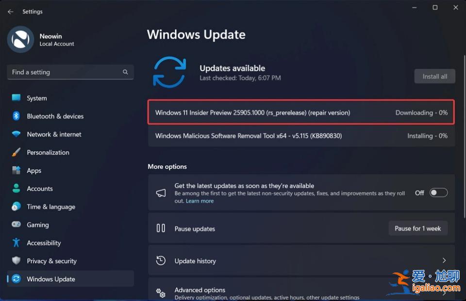 Win11 25905版本用Windows Update修復系統的方法?