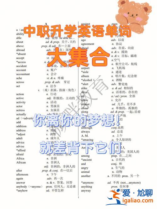 本文目錄(圖片來源網絡,侵刪)對口升學英語必背單詞恭喜升學的祝福語對口升學可以報英語四級嗎中學英語詞匯的學法一、對口升學英語必背單詞以下是對口升學英語中常見的必背單詞,這些單詞在英語學習和考試中經常出...